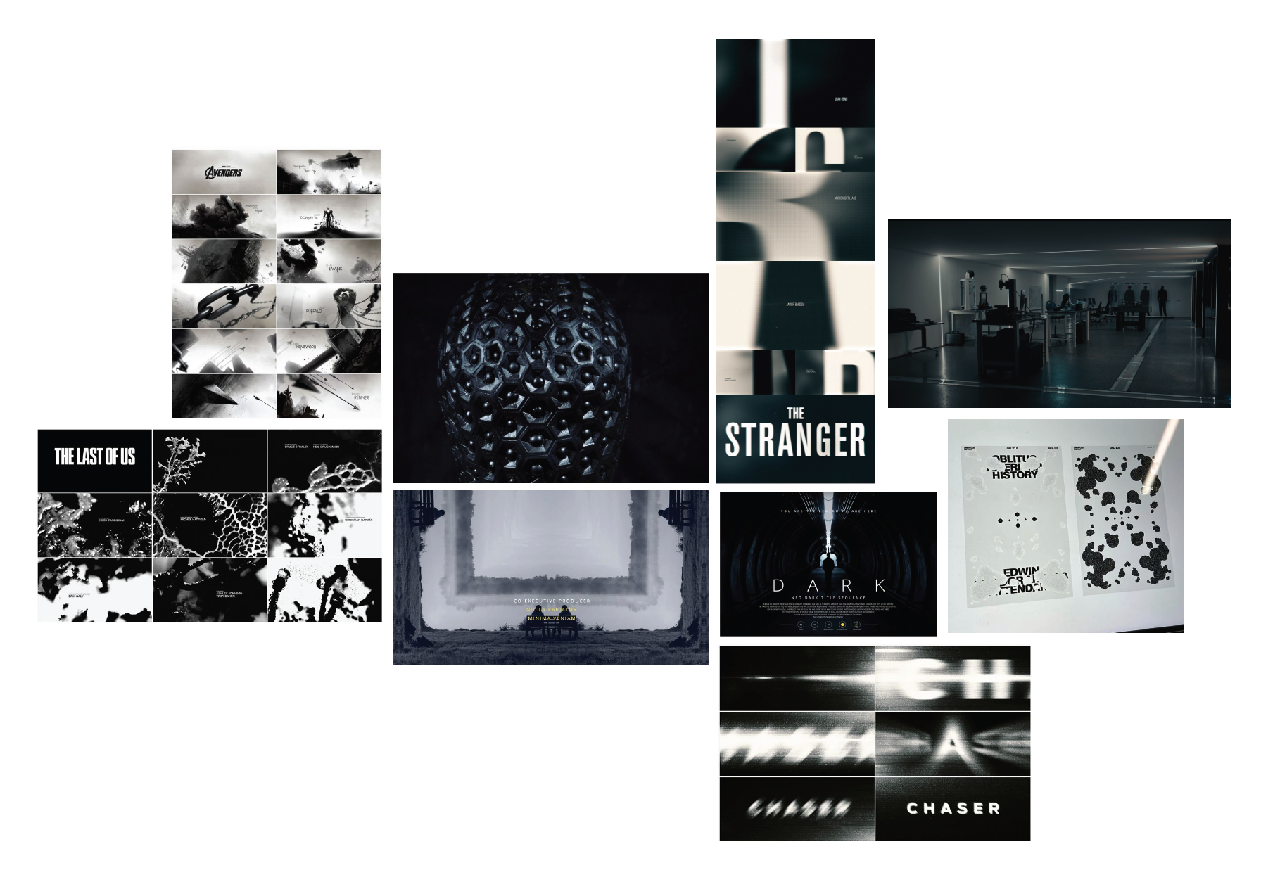 I began by creating a moodboard to establish visual direction. This included a desaturated color palette, reference title sequences for pacing and type, and key stills from the movie. This helped define the aesthetic that would guide my project.